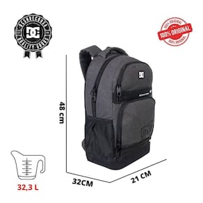 Design moderno e esportivo com a assinatura DC Shoes Bolsos organizadores para itens pessoais, canetas e acessórios Alças ajustáveis e acolchoadas para maior conforto Painel traseiro ventilado para conforto durante o uso prolongado Material resistente e impermeável, ideal para diferentes condições climáticas Perfeita para uso escolar, esportes e aventuras no dia a dia Medidas da mochila Altura 48 cm Largura 32 cm Profundidade 21 cm 32,3 litros Material poliester 900D