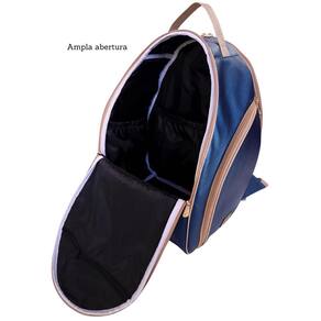 Mochila Esportiva Raqueteira Beach Tennis - Miellu Bolsas Cor: Azul e Bege A Mochila Esportiva Miellu é o acessório perfeito para jogadores apaixonados por esporte vibrante e empolgante. Com um design moderno e funcional, ela foi cuidadosamente projetada para atender às necessidades dos atletas, oferecendo amplo espaço e recursos práticos para transportar suas raquetes, equipamentos e pertences pessoais. Com uma capacidade de 32 litros, esta mochila permite que você leve tudo o que precisa para a quadra, mantendo-se organizado e preparado para suas partidas. O bolso térmico lateral é ideal para acomodar garrafa de água, permitindo que você se mantenha hidratado durante o jogo. Do outro lado, encontra-se um bolso com forro grande, que pode ser utilizado como porta tênis ou para roupa suja Saiba mais detalhes desse modelo abaixo: Características externas: Bolso térmico para garrafa de água e outros objetos; 1 bolso frontal com zíper; 2 bolsos laterais com zíper; Bolso lateral da mochila podendo ser para colocar calçados ou roupas sujas; Alças de ombro acolchoadas 1 compartimento grande para raquetes. Características Internas: Forrada com nylon resinado preto internamente, material resistente e leve, garantindo resistência e leveza a peça; 2 repartições na parte interna para facilitar a organização; Bolso na parte interna da tampa com zíper. Medidas aproximadas: Largura x Altura x Profundidade 30 cm x 44 cm x 24 cm Produto fabricado no Brasil Marca: Não Informado Ean: 7791536457859