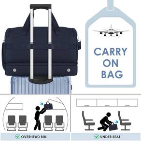 Bolsa esportiva - ?Grande capacidade e leve?A bolsa esportiva mede 52,8 x 23 x 34,3 cm, a capacidade é de cerca de 42 L, pode caber em viagens curtas de 2 a 4 dias de itens essenciais diários. A bolsa de viagem é feita de tecido resistente à água de alta qualidade e leve. Pesa apenas 800 g, conveniente para viagens e transporte. - ?Separação de seco e úmido?A bolsa de ginástica com um bolso forrado de PVC à prova d'água com zíper para roupas molhadas ou toalhas e roupa de banho, pode efetivamente manter a bolsa limpa e não molhar. E a bolsa de higiene pessoal pode colocar em seus produtos de higiene pessoal, cosméticos, lâminas etc. Fácil de armazenar e organizar. - Compartimento separado para sapatos: a bolsa de fim de semana tem uma cabine de sapatos independente, que pode acomodar 2 pares de sapatos masculinos ou roupas sujas e saídas de ar para dispersar o mau cheiro. Pode ajudar você a evitar a sujeira de outras roupas ao fazer a mala, além de proporcionar mais conveniência para sua viagem. - ?Design adequado para viagens?A bolsa de mão está perfeitamente alinhada com os regulamentos de voo e os requisitos de bagagem de mão das principais companhias aéreas. Pode ser colocada na cabine aérea e sob o assento para facilitar a acessibilidade, e a manga traseira permite que você fique preso à mala, solte suas mãos. - ?Bolsa noturna versátil?Se você estiver indo para a academia, planejando uma escapada de fim de semana ou fazendo uma viagem de negócios, é ideal para uma variedade de propósitos. Esta bolsa multiuso pode ser usada como bolsa de ginástica, mala de mão para voos, bolsa esportiva, bolsa de fim de semana noturno, bolsa de hospital ou uma elegante companheira de praia.