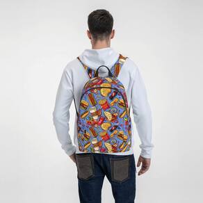 Mochila FeHuew de 16 polegadas Fast Food Hamburger Pizza Cola para laptop Mochila escolar com impressão completa Bolsa de ombro para viagens, caminhadas, acampamento, mochila com zíper antifurto. Esta mochila tem zíperes de metal duráveis para proteger sua mochila contra roubo e uso duradouro. O zíper é mais escorregadio