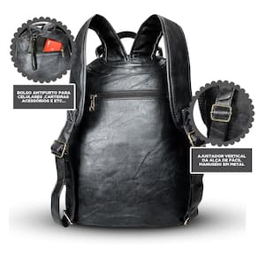 Mochila Feminina Bolsa Faculdade Notebook Divisória Couro Pu K155 PRETO Mochila Feminina Bolsa Faculdade Notebook Divisória Pu K155 Possui 3 divisória todas com fechamento por Zíper. Possui 2 bolsos laterais, alça de mão fixa e de costas reguláveis, possui bolsos traseiro e frontal, com fechamento por zíper de metal.