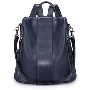 Mochila Feminina de Couro Conversível para Bolsa de Ombro, S ZONE, Azul - Branco - Regulável