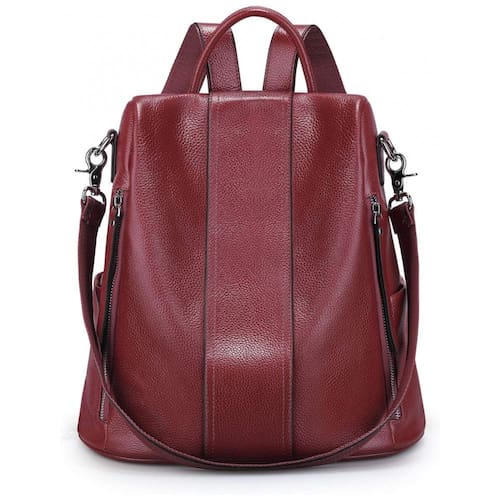 Mochila Feminina de Couro Conversível para Bolsa de Ombro, S ZONE, Vermelho - Branco - Regulável