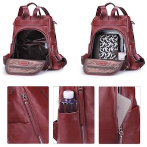 Espaçosa o suficiente para uso diário A bolsa mochila para mulheres possui 1 compartimento principal com bolso interno, 2 bolsos internos com fenda, 2 bolsos laterais e 2 bolsos frontais com zíperes lisos. Seu tamanho de 33,53 centímetros x 16 centímetros x 32,51 centímetros CLA é adequado para viagens, escritório, trabalho, negócios e viagens rodoviárias, faculdade e qualquer outra ocasião.
