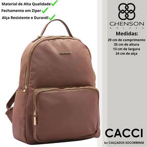 Mochila Feminina Chenson Mochila Microfibra Costas 8184126, fechamento em fecho-éclair, forro em tecido personalizado, compartimento para pequenos objetos, amplo espaço, bolso frontal com fecho-éclair, alça em poliuretano, acabamento em costura contrastante.