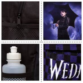 Mochila Escolar Infantil Wandinha possui alça de mão reforçada. Agora você pode levar sua mochila no seu dia a dia ou acompanhar você na escola. Sua abertura maior se dá por zíper com puxador. Na parte de dentro possui amplo espaço para a guardar diversos materiais como cadernos, livros e estojos. Na parte da frente, possui bolso com zíper para a guardar pertences de menor tamanho e bolsos laterais.