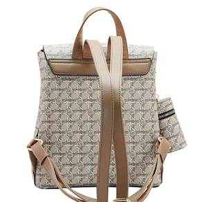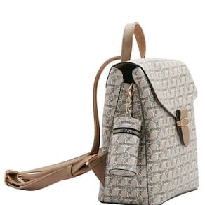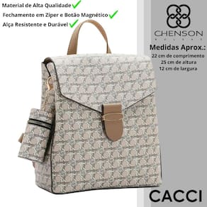 Mochila Feminina Chenson Linha Monograma Tramas Costas 8484490 Poliuretano, fechamento com fecho-éclair e botão magnético, forro em tecido personalizado, compartimento para pequenos objetos, 3 divisões, alça em poliuretano, acabamento em costura contrastante.