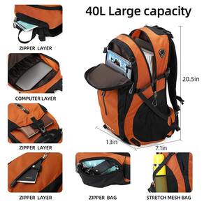FENGDONG Mochila leve impermeável 40L para caminhadas, acampamento, viagem para homens e mulheres, laranja - ? Resistente à água e durável: feita de material de poliéster de alta densidade resistente à água. A mochila de acampamento FENGDONG é feita de fibra de poliéster extra grossa, resistente a rasgos, resistente à água e antiabrasão. Todos os pontos de tensão são reforçados com aderência à barra para aumentar sua longevidade. - ? Acolchoamento de malha respirável: mochila elegante com alças de ombro e costas de malha ventilada, sistema respirável e design leve são a mochila de caminhada perfeita para esportes ao ar livre. O design ergonômico oferece conforto ao corpo mesmo quando a mochila está completamente cheia. Mantenha-a fresca mesmo no verão. - ? Mochila de grande capacidade e vários compartimentos: mochila universitária com espaço de armazenamento de 40 L (52 x 33 x 18 cm), esta mochila possui design de vários compartimentos inclui um compartimento principal com zíper, um bolso frontal com zíper e dois bolsos laterais. Um separador e um pequeno bolso com zíper no compartimento principal são convenientes o suficiente para ajudar você a organizar ainda mais as coisas. A grande capacidade ajuda você a organizar facilmente todos os seus itens essenciais. - ? Compacta e confortável: pesa apenas 900 g, pode ser facilmente dobrada em seu próprio bolso para armazenamento e desdobrá-la quando você precisar. Alças de ombro de malha respirável com enchimento de esponja abundante ajudam a aliviar o desconforto do seu ombro. Um item essencial para esportes, caminhadas, acampamento e viagens. - ? COMPRA 100% SEM RISCOS: Se você não estiver satisfeito com nossa mochila, imediatamente, nós lhe daremos uma solução satisfatória o mais rápido possível.