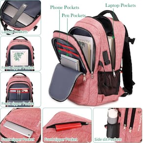 Mochila universitária - ? Bolsos grandes e multiusos ? Dimensões externas: 47 cm A x 30 cm C x 21 cm L; o compartimento principal tem interior espaçoso, não só é capaz de acomodar os laptops mais populares de 17,3 polegadas, mas também pode guardar eletrônicos tecnológicos e necessidades diárias facilmente, e três bolsos frontais externos generosos podem armazenar acessórios essenciais muito bem. - ? Acessórios modernos e práticos? Esta mochila elegante possui porta micro-USB externa e porta de fone de ouvido de 3,5 mm para oferecer a você uma maneira mais criativa de carregar seu dispositivo eletrônico e tornar uma experiência de uso mais conveniente. E a interface do fone de ouvido libera suas mãos ao desfrutar de áudio, música, etc. Enquanto isso, observe que esta mochila não inclui um carregador portátil. - ?Design prático? A alça de peito com fivela apito e design de alça de bagagem ajuda você a travar sua mochila no lugar com segurança. Os bolsos laterais elásticos de rede são convenientes para guardar guarda-chuvas ou garrafas de água. Design adequado para faculdade, negócios, viagens, acampamento, caminhada e outros usos diários. - Qualidade superior e artesanato premium: feita de tecido Oxford resistente à água e zíperes de metal duráveis, protege seu dispositivo contra chuva leve e derramamentos acidentais (não é recomendável deixar de molho por muito tempo). O forro resistente adiciona proteção adicional ao redor das bordas. Alça superior ergonômica para um longo tempo de transporte. - ? Sistema confortável: o acolchoamento ventilado macio com vários painéis proporciona o máximo de fluxo de ar traseiro e suporte. Alças de ombro respiráveis e ajustáveis aliviam o desconforto do ombro. Se você tiver alguma dúvida, não hesite em entrar em contato conosco. - Este item não se destina a ser utilizado por crianças menores de 12 anos.