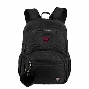É hora de se apaixonar por essa linha A Mochila Grande 2 Compartimentos Capricho Crush Preto faz parte de uma das linhas mais icônicas da Sestini em parceria com a Capricho, agora em uma nova cor. Produzido em Nailon, material bem resistente. Possui alças anatômicas para maior conforto dos ombros. Tem bolso frontal com fechamento por zíper, bolsos laterais com elástico para pequenos objetos ou garrafinha e, além disso, tem alça de mão e puxadores em tiras de cadarço. Este modelo acompanha um lindo acessório.