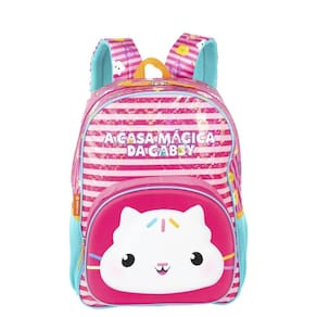 A mochila oficial de A Casa Mágica da Gabby traz todos os elementos que encantam os pequenos que são apaixonados pelo desenho sensação do momento. Espaçosa e pronta para acomodar todo o material escolar, além do compartimento principal, também possui bolsos laterais em rede para a garrafinha e um bolso frontal com o Cakey As alças de costas espumadas proporcionam um dia a dia mais confortável para os pequenos. Características Alça: De Mão, Espumada, Regulável, De costas Compartimentos: 1 Compartimento Cor:Colorido Ocasião: Escolar Tamanho: Grande Material: Poliéster : Super Dimensões Altura: 41 cm Largura:33 cm Profundidade: 18 cm Peso: 0,3 kg Capacidade Total: 19 L Marca: Não Informado