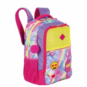 Sinta toda a vibe de ser uma blogueirinha no dia a dia e na sala de aula com a linha Good Vibes da Sestini Essa mochila grande oferece um amplo espaço interno para organização dos pertences e bolso frontal de fácil acesso aos objetos com puxador personalizado. Também é confeccionada em material resistente e de fácil limpeza. É possível transportar sua garrafinha com facilidade, utilizando os bolsos laterais. Possui tag de identificação e alças e costas espumadas para o conforto diário. Características Alça: De Mão, Espumada, Regulável, De costas Compartimentos: 1 Compartimento Cor:Colorido Ocasião: Escolar Tamanho: Grande Material: Poliéster : Super Dimensões Altura: 40 cm Largura:30 cm Profundidade: 18 cm Peso: 0,4 kg Capacidade Total: 19 L Marca: Não Informado