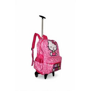 Mochila escolar infantil juvenil com rodinhas, estampada com o personagem Hello Kitty em destaque. Ideal para crianças que buscam praticidade e estilo no dia a dia escolar.