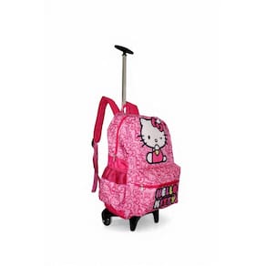 Especificações - Estampa exclusiva Hello Kitty - Cor predominante: rosa - Alça retrátil e rodinhas para fácil transporte - Bolsos laterais para garrafa e pequenos objetos - Compartimento principal espaçoso e um bolso menor na frente