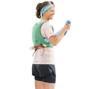 Possui dois bolsos com loops nas alças para manter as soft flasks de 500ml não inclusas presas durante as corridas. Ainda possuem mais 2 compartimentos em cada alça para itens de rápido acesso como géis de carboidrato e barras de proteína. Um terceiro compartimento nas alças possui o fechamento em zíper para armazenar e transportar celulares, chaves, fones de ouvido e outros itens pequenos.