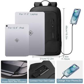 mochila para laptop - ?Fácil de organizar?Esta mochila para laptop masculina tem vários compartimentos e bolsos práticos: 1 bolso principal, 1 bolso frontal, 2 bolsos acolchoados para laptop, 4 bolsos de malha, 3 bolsos normais, 3 bolsos com zíper, 3 bolsos para caneta, 3 bolsos para cartões, 1. Pode fornecer espaço espaçoso para o seu laptop (cabe até 15,6 polegadas), iPad, pasta, canetas, livros, bolsa, tablet, carregador portátil, etc. Mantém seus itens organizados e fáceis de encontrar. - ?Design de porta USB?Com porta de carregamento USB externa e cabo de carregamento interno, esta bolsa para laptop com porta USB oferece um acesso fácil para carregar seu telefone quando você estiver carregando uma mochila de computador na estrada. (Power Bank não está incluído) - ?Confortável e durável?Esta mochila azul para laptop masculina é feita de tecido Oxford resistente à prova d'água com zíperes de metal duráveis. A parte traseira é feita com material EVA de alta qualidade, que é confortável e macio, oferece o máximo suporte para as costas. Alças de ombro respiráveis e ajustáveis com almofada de espuma ajudam a aliviar o desconforto do ombro. - ?Leve e conveniente?O peso desta mochila preta é de 670 g, que é leve e fina, o que a torna muito adequada para carregar por muito tempo. E o design de boca aberta ajuda você a carregar facilmente e manter o rastreamento de cada item, tornando-o muito conveniente de usar. - ?Ótima mochila de trabalho para homens e tamanho perfeito?O tamanho das mochilas casuais é de 19,4 x 12,5 cm × 7,5 cm. Perfeita para atividades internas/externas. Uma alça de bagagem na parte de trás da mochila ajuda a liberar sua mão, tornando sua viagem e viagem mais convenientes onde quer que você vá. Escolha perfeita como mochila universitária, mochilas universitárias para homens e mulheres. - ?100% super serviço sem se preocupar?Nossas mochilas para laptop são feitas de um material extra espesso especial, forte e durável, forneceremos serviço de garantia de qualidade por 1 ano. Se você tiver alguma dúvida sobre nossa mochila pequena, sinta-se à vontade para entrar em contato conosco por e-mail, responderemos dentro de 24 horas. Nós resolveremos isso.