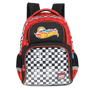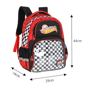 Mochila de Costas Luxcel Hot Wheels   A Mochila de Costas da Hot Wheels Luxcel é perfeita para transportar material escolar ou para uso diário. Com um design moderno e funcional, essa mochila possui amplo espaço interno, permitindo que você carregue tudo o que precisa de forma organizada e prática. Essa mochila possui um compartimento principal grande, com espaço de sobra para seus livros, cadernos e demais itens, além disso, conta com dois bolsos laterais para garrafa, ou outros objetos pequenos. As alças acolchoadas e ajustáveis proporcionam mais conforto no transporte, enquanto o formato ergonômico distribui melhor o peso nas costas. É ideal para escola, passeios e outras atividades do dia a dia.   Características da Mochila Escolar: - 1 Bolso Principal com bastante espaço - 3 Bolsos Frontais todos com fechamento - 2 Bolsos laterais para squeeze - Alça de mão reforçada na parte superior - Alças de costas acolchoadas e ajustáveis - Fechamento em Zíper personalizado - Material: 80% Poliéster 20% PVC - Forro: 100% Poliéster - OBS: Carrinhos da imagem não estão inclusos   Dimensões Aproximadas: - Altura: 44 cm - Largura: 29 cm - Profundidade: 14 cm
