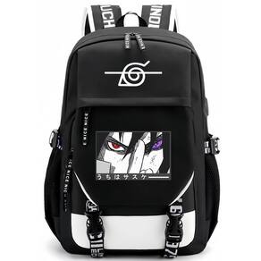 Mochila Huoying Naruto Sasuke de couro PU de grande capacidade