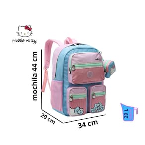 Design exclusivo: estampa vibrante da hello kitty, com cores alegres e detalhes encantadores, tornando-a um acessório único e cheio de charme. Conforto e praticidade: alças ajustáveis e acolchoadas que garantem maior conforto ao carregar, além de um painel traseiro acolchoado que proporciona suporte. Espaço e organização: compartimentos espaçosos para livros, cadernos e materiais escolares, além de bolsos extras para itens pequenos como canetas, chaveiros e lancheira. Material resistente: feita com materiais de alta qualidade, duráveis e fáceis de limpar, garantindo que a mochila se mantenha bonita por muito mais tempo. Tamanho ideal: perfeita para adolescentes, com tamanho adequado para carregar tudo o que precisa para a escola e atividades cotidianas.