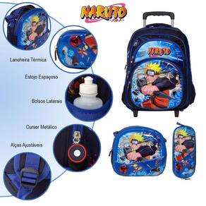 Mochila Infantil De Rodinhas Naruto Grande Lancheira Estojo