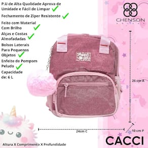 Deixe os dias escolares das crianças mais brilhantes e encantadores com a Mochila Infantil Brilho Pompom da Chenson. Um acessório tão único quanto elas!