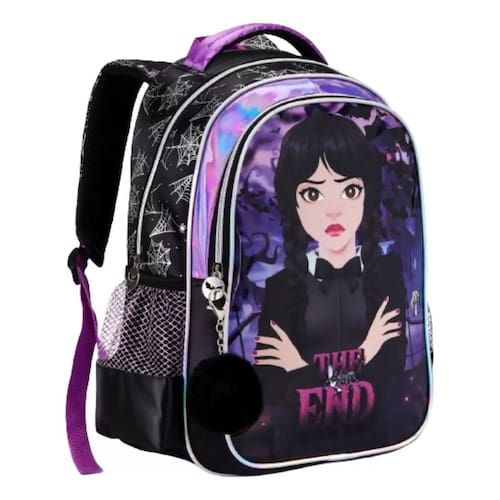 A Mochila Escolar Feminina Grande Pompom The End 40Cm é perfeita para quem é fã da Família Addams, pois possui uma estampa com os personagens Wandinha e Vandinha, além da frase The End. Com essa mochila, você vai arrasar na escola e mostrar todo o seu estilo.