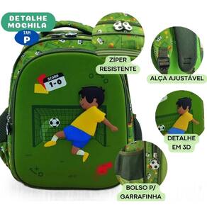 MOCHILA TAMANHO PRECOMENDADO PARA CRIANÇAS DE 2 A 4 ANOSTamanho Mochila:- Altura: 35cm- Largura: 27cm- Profundidade: 14cmA mochila possui:1 Bolso principal1 Bolsos frontais2 Bolsos lateraisFrente relevo 3dTamanho ideal para a fase da escolinha de educação infantil, pré-escola e fase inicial estudantil.A mochila cabe cadernos grandes de matéria e cadernos pequenos