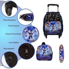 Mochila Infantil Masculina Rodinhas Sonic Lancheira Creche