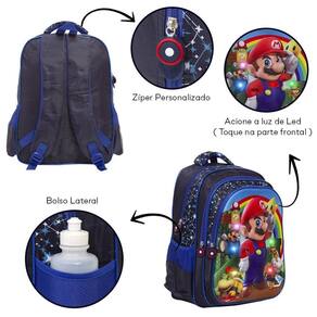 Mochila Escolar Infantil Super Mario possui alça de mão reforçada. Agora você pode levar sua mochila no seu dia a dia ou acompanhar você na escola. Sua abertura maior se dá por zíper com puxador. Na parte de dentro possui amplo espaço para a guardar diversos materiais como cadernos, livros e estojos. Na parte da frente, possui luzes de led que piscam na frente, tornando-a ainda mais divertida e atraente.