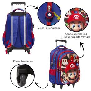 Mochila Infantil Masculina Super Mario 3D Led Rodinha Tam G