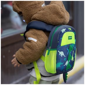 A mochila infantil mommore dinossauro verde com guia de segurança é indicada para crianças de 2 a 4 anos em uso de creche, pré-escola e passeios, fabricada em neoprene leve, macio e resistente à água, com compartimento principal para brinquedos, roupas leves ou lancheira, bolso frontal aberto de fácil acesso, dois bolsos laterais para garrafinha e alças acolchoadas ajustáveis com tira peitoral, além de guia destacável para manter a criança próxima em ambientes movimentados. ? Ficha Técnica: