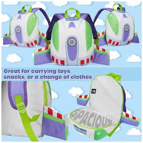 A mochila infantil Disney Toy Story Buzz Lightyear mini é indicada para crianças em idade pré-escolar, com corpo em poliéster leve, painel frontal temático do personagem e asas em relevo 3D, compartimento principal com fechamento em zíper para livros pequenos, cadernos, brinquedos e lancheira, além de alça superior para transporte manual e alças de ombro acolchoadas e ajustáveis para uso diário em escola, viagens e passeios. ? Ficha Técnica: