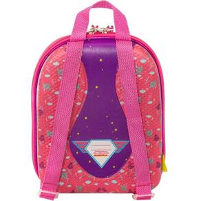 Vantagens: design vibrante e colorido, estampa de ação em roxo estrelado, encorajando a imaginação. Conforto: alças acolchoadas e ajustáveis para maior conforto durante o uso diário. Durabilidade: material resistente com acabamento estruturado para proteger os itens transportados. Praticidade: zíperes com puxadores personalizados para facilitar o uso pelas crianças. Capacidade: interior espaçoso para lanches, brinquedos, livros e outros objetos.
