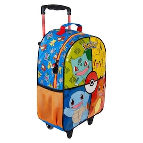 A Mochila de Rodinhas apresenta um painel frontal em PVC vincado com uma vibrante estampa dos personagens de Pokémon. Produzida em poliéster resistente e estampado, conta com um bolso principal espaçoso e interior forrado, dois bolsos laterais em redinha, zíperes com puxadores personalizados e alça de mão em nylon reforçado com poliéster. Além disso, possui haste com travas e rodinhas em silicone, garantindo praticidade e durabilidade.