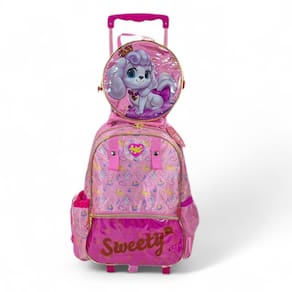 Design exclusivo com estampa pet dog Rodinhas de silicone resistentes Alça retrátil ajustável Compartimentos amplos para cadernos, livros, PASTA Bolso frontal e lateral para garrafa Alça costas resistente Medidas 16 : 41 cm de altura x 30 largura x 15 cm comprimento/ lateral Acompanha lancheira redonda presa e alça tiracolo/ costa Material poliester CBFT9511