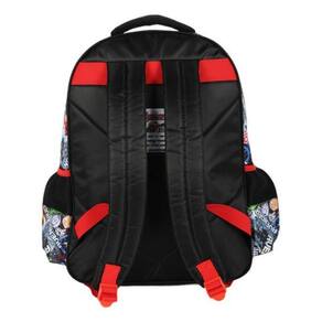 Fabricada em jacquard, possui alças de costas acolchoadas com regulagens, alça de mão com proteção de borracha, bolsos laterais em redes elásticas, bolso superior com fechamento + 2 bolsos frontais com com fechamento em zíper de metal personalizado, etiqueta personalizada em bolso plástico na parte de trás e acolchoado na parte de trás da mochila para as costas da criança.