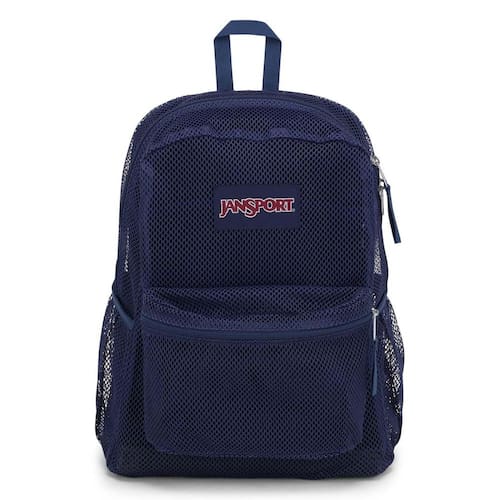 JanSport Pacote de malha ecológica, Azul marino, Pacote de malha ecológica - Bolsa de malha ecológica: dê uma boa olhada nas mochilas de malha ecológica da JanSport! Esta mochila de malha exclusiva e durável combina estilo, funcionalidade e qualidade. - Alta qualidade e durável: feita com tecido principal de poliéster 840 Denier de alta qualidade, 100% reciclado, a mochila de malha durará em todas as aulas! Esta mochila é de malha para que qualquer pessoa possa ver facilmente o que está dentro. - Projetada para conforto: nossas mochilas de malha para adultos têm um painel traseiro totalmente acolchoado e alças de ombro acolchoadas clássicas de corte reto para conforto. Com um compartimento grande e um bolso frontal com zíper, nossa mochila de praia está pronta para tudo. - Tudo o que você precisa: esta mochila semitransparente mede 43 x 32 x 15 cm, para que você tenha muito espaço para todos os seus itens essenciais. Nossa bolsa preta tem uma capa para laptop de malha de 15 polegadas e bolsos laterais duplos para garrafa de água. - Tradição americana: há mais de 50 anos, a JanSport está comprometida em criar e fornecer mochilas de alta qualidade para adultos que estão prontas para qualquer passeio. Nossa mochila de malha é ótima para o trabalho, praia e muito mais.