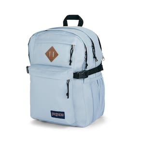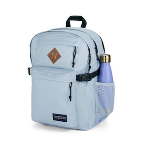 JanSport Campus principal, Azul crepúsculo, Campus principal - Dois compartimentos principais para melhor espaço e organização, um bolso lateral de malha para garrafa se estica para caber em garrafas grandes - Compartimento dedicado para laptop acolchoado de 15 polegadas com fecho de zíper, bolso frontal com painel de organização completo e clipe para chave - Alças ergonômicas em forma de S para conforto e suporte de malha de ar para respirabilidade, clipe de chave mantém seus pertences presos com segurança - Tiras de compressão lateral com fivela para reduzir grandes cargas, forro 100% reciclado sem tingimento - Detalhe quadrado de amarração de couro, alça de alça na parte superior, pequeno bolso superior, puxador de zíper com cordão, painel traseiro totalmente acolchoado para conforto de uso prolongado