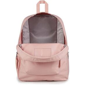 Mochila Jansport Transport Pack Misty Rose Rosa A JanSport Transport Pack combina praticidade e sustentabilidade, feita em parte com material reciclado. Possui compartimento principal amplo, bolso lateral para garrafa, bolso frontal com zíper e puxadores com cordão. O conforto fica por conta das alças acolchoadas, painel traseiro macio e alça de mão.
