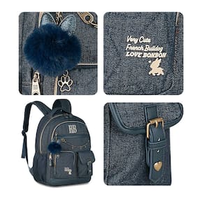 Características Mochila: - Alça de mão - Alça de costas - Alça carona - Bolso antifurto - Bolsos Laterais - Confeccionados em material jeans com Matelassê - Chaveiros pompom com orelhinhas, plaquinhas de metal e correntinha com strass em ouro velho - Logo RB em metal - Zíper tratorado com puxadores com cadarço - Compartimentos para laptop + tablet- Forro rossa listrado