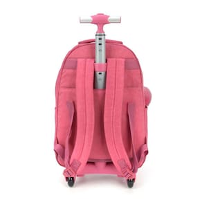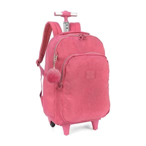 Mochila Escolar Linha Larissa Manoela com Rodinhas e Chaveiro Pompom.
