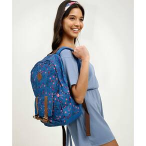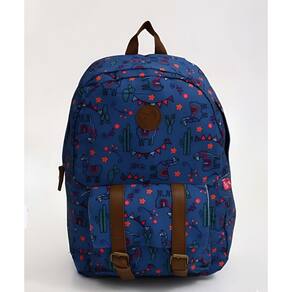 Mochila feminina confeccionada em tecido. Possui estampa lhama, fechamento por zíper, repartição única, forro, bolso lapela frontal com tira, alça de mão, alças traseiras ajustáveis, acabamento em costura no tom.
