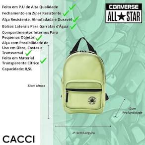 Leve seu estilo ao próximo nível com a Mochila Converse GO LO Backpack Citron da All Star. Moderna e funcional, ela combina praticidade e design arrojado para acompanhar sua rotina com muito charme.