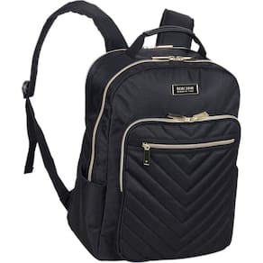 Kenneth Cole REACTION Chelsea Mochila feminina Chevron acolchoada para laptop e tablet de 15 polegadas, Preto, Tamanho único, Chelsea Mochila feminina para laptop de 15 polegadas, bolsa para - ?Qualidade de vanguarda?Feita de um elegante exterior de sarja de poliéster acolchoado chevron resistente à água com zíperes banhados a ouro. O interior possui um forro de poliéster listrado resistente a rasgos totalmente forrado que resistirá ao uso diário. A mochila perfeita para computador de 38 cm para manter seus itens essenciais de negócios organizados enquanto estiver em movimento. - ?Espaço de armazenamento e bolsos?Bolso técnico acolchoado separado para a maioria dos laptops com tela de até 15 polegadas, bem como laptop de 14 polegadas ou MacBook/laptop de 13 polegadas. O bolso acolchoado para tablet no compartimento principal é compatível com a maioria dos tablets. O exterior frontal possui um extenso organizador de negócios para todos os itens essenciais necessários. - ?Confortável e funcional?O exterior traseiro possui alças de ombro respiráveis e ajustáveis que aliviam o desconforto dos ombros para o máximo conforto durante o movimento. A parte traseira da mochila possui uma alça de carrinho que se encaixa na maioria das alças verticais de bagagem para transporte com as mãos livres. Bolsos convenientes para guardar bebidas em ambos os lados da mochila. Possui uma alça superior conveniente e fácil de carregar. - ?Multiuso?Esta mochila foi projetada para caber perfeitamente sob o assento de um avião quando você estiver viajando ou em viagem de negócios. Adequada para viagens ou como bagagem de mão, pode ser facilmente armazenada. Esta mochila é leve e elegante, perfeita para o ensino médio, faculdade, viagens, caminhadas, viagens de negócios, deslocamento para o trabalho, uso diário, atividades ao ar livre ou até mesmo perfeita como presente. - ?Dimensões?Tamanho total: 40,6 cm A x 25,4 cm L x 19 cm P. Compartimento para laptop: 38,7 cm A x 25,4 cm L x 4,4 cm P. Peso do produto: 1 kg. Compatível com a maioria dos tablets e cabe na maioria dos laptops com tela de até 15 polegadas.