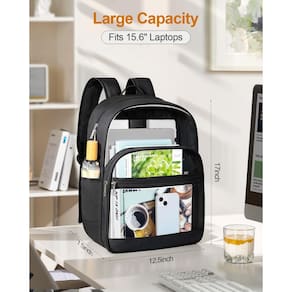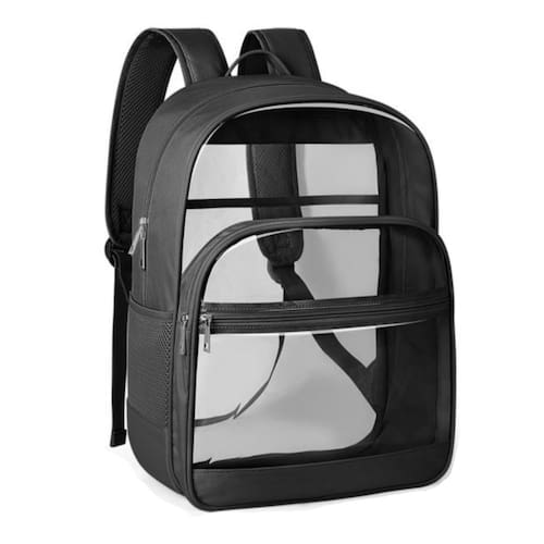 KIMNERPU Mochila escolar para homens, mulheres - Grande capacidade: o tamanho da mochila transparente é de 43 x 19 x 32 cm. Um compartimento principal de grande capacidade, um pequeno bolso interno, dois compartimentos frontais e dois bolsos laterais de malha, que podem armazenar seus livros, laptop, notas, celular, guarda-chuva, garrafa de água e outros itens. Esta bolsa transparente é espaçosa o suficiente para armazenar todos os seus itens essenciais. - Design especial e resistente: a mochila escolar com tecido Oxford e design de emenda de PVC é leve, macia e fácil de limpar. A conexão entre a alça de ombro e o corpo transparente da bolsa é reforçada com vários pontos, o que é resistente e não é fácil de quebrar. - Transparente e conveniente: a mochila transparente permite visibilidade completa em toda a volta. Pode fornecer uma verificação rápida e fácil acesso ao passar pela segurança. Além disso, é conveniente verificar se há algum item em falta antes de sair. - Alças de ombro respiráveis e ajustáveis: o design atualizado das alças de ombro da mochila transparente resistente é macio, respirável e ajustável, para que você possa carregá-lo confortavelmente, reduzir a carga e relaxar seus ombros. - Várias ocasiões: esta bolsa transparente é adequada para uma ampla variedade de ocasiões, incluindo escola, shows, universidade, academia, praia, aeroportos, trabalho, viagens e assim por diante. A mochila resistente transparente é perfeita para o uso diário.