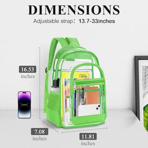 Especificação< /b> Comprimento: 30 cm Largura: 18 cm Altura: 42 cm Peso: 1,7 prounds Material: Policloreto de Vinila Cor: Verde - Grande capacidade: 42 x 30 x 18 cm. 1 compartimento principal para laptops, livros, 1 pequeno bolso interno para celular, cartões. 1 compartimento médio para notbook, com 2 pequenos bolsos internos para canetas, chaves. 1 compartimento frontal para estojos de lápis, óculos. 2 bolsas laterais de malha para guardar guarda-chuvas dobráveis. - Mochila de PVC transparente: a mochila transparente é feita de PVC premium. É resistente e macia, você pode dobrá-la conforme necessário. Você pode encontrar facilmente o que coloca nesta bolsa transparente. (Observação: esta mochila de PVC não é aprovada pelo estádio.) - Design elegante e confortável: o design atualizado da alça de ombro da mochila transparente reduz a pressão no ombro. As alças ajustáveis podem ser ajustadas de acordo com sua necessidade. - Costura de reforço: a conexão entre a alça de ombro e o corpo transparente da mochila é reforçada com vários pontos, que é resistente e não é fácil de quebrar. Esta mochila transparente é resistente e robusta. - Uso multiuso: você pode carregar esta mochila transparente para várias ocasiões, como locais de trabalho, shows, acampamento, praias, aeroportos e viagens. É espaçosa o suficiente para armazenar todas as necessidades.