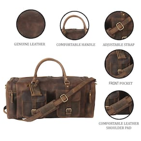 KomalC Bolsa esportiva de 60,96 cm, bolsa esportiva de viagem para o fim de semana, bolsa de couro para academia, esportes, cabine, bolsa Holdall - 100% couro de búfalo verdadeiro caçador – Esta bolsa esportiva de couro resistente é feita de couro 100% de búfalo caçador real e é feita à mão. Com o tempo, a cor, a textura e o caráter ficam mais ricos, ou seja, o couro envelhece lindamente - Design espaçoso: estas elegantes bolsas de couro feitas à mão são fáceis de transportar e incluem 2 bolsos externos com fivela e 2 bolsos grandes com zíper em cada lado. Este fim de semana mede 61 cm de comprimento 25,4 cm de altura e 24 cm de largura. - Construído para durar – acreditamos na qualidade acima da quantidade e nunca comprometemos o hardware. Usamos fivelas e ferragens de latão de alta qualidade. Zíperes YKK premium e linha de costura de alta qualidade. Sua bolsa vai durar uma vida inteira - Ideia de presente perfeita para ele - os homens adoram o visual robusto e vintage de nossas bolsas de viagem, portanto, são um presente perfeito para o dia dos pais, aniversários, dia dos namorados, natal, formatura, volta à faculdade ou qualquer ocasião que exija um presente
