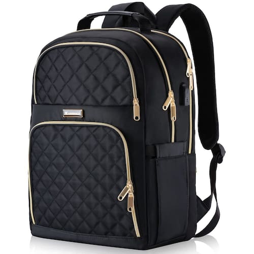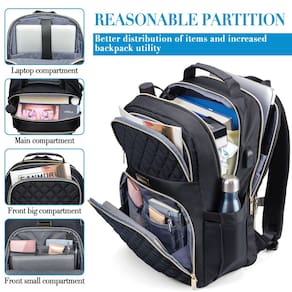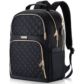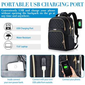 Mochila fofa para meninas do ensino médio. Especificações: Dimensão: 43 cm A x 30 cm C x 17 cm L. Peso: 700 g. Comprimento da alça de ombro: até 114 cm. Material: Nylon + esponja + zíper banhado a ouro Mochila feminina feita de zíperes banhados a ouro requintado, alça superior de couro PU, tecido impermeável de poliéster com textura de ponto moderno e zíper banhado a ouro na parte externa e material resistente a rasgos no interior para maior durabilidade. Design da porta de carregamento USB: com uma porta de carregamento USB externa configurada, esta mochila USB para laptop oferece a você uma maneira mais conveniente de carregar seu telefone enquanto estiver em movimento. (Carregador portátil não incluído). Mochila multifuncional para laptop: a mochila feminina tem bolsos retráteis em ambos os lados, especialmente projetados para itens pequenos. Você pode colocar pequenos itens como copos de água, guarda-chuvas, etc., simples e convenientes. Esta é uma bolsa escolar elegante, presente ideal para adolescentes, meninas, estudantes, professores, mulheres. Uma ótima opção para mochila de trabalho de escritório, mochila de viagem para mulheres, meninas do ensino médio, meninas do ensino médio, mochila de professores, todas as atividades internas e externas. - Material moderno preto e dourado resistente à água: a mochila preta feminina é feita de tecido impermeável de poliéster com textura de costura moderna e zíper banhado a ouro na parte externa e material resistente a rasgos no interior para maior durabilidade. A parte superior da mochila para laptop está equipada com uma confortável alça de couro PU, que é fácil de carregar e adiciona uma sensação de moda. - Mochila de grande capacidade com compartimento para laptop: o tamanho de uma mochila para laptop feminina é: 43 x 30 x 17 cm, 30 L. A mochila para laptop tem um total de 4 compartimentos e 2 bolsos laterais - 1 compartimento acolchoado para laptop de 15,6 polegadas. 1 compartimento principal interno para suas pastas, livros, roupas, etc., bem como outras necessidades diárias. 2 bolsos frontais podem guardar canetas, óculos de sol, carregador, chaves. Mochilas de viagem para laptop mantêm tudo organizado. - Porta de carregamento USB: com uma porta de carregamento USB externa e um cabo de carregamento embutido no interior, e há um bolso especial dentro da mochila para colocar o carregador portátil (observação: o carregador portátil não está incluído), oferecendo a você uma maneira mais conveniente de usar seu celular enquanto caminha ou viaja. A mochila para laptop torna sua viagem e viagem mais convenientes onde quer que você vá. - Bolsos antifurto e alça de bagagem: esta mochila feminina tem uma alça de bagagem embutida que desliza facilmente sobre a alça da bagagem/mala para aliviar a pressão nas costas e nos ombros durante o uso. O bolso oculto antirroubo na parte de trás da mochila para meninas em idade escolar pode proteger seu smartphone, carteira, passaporte e outros objetos de valor de serem perdidos para todas as necessidades diárias básicas de escola, faculdade, trabalho, viagens, caminhadas, viagens de negócios. - Mochila elegante para todas as ocasiões: esta é uma mochila elegante de volta às aulas, presente ideal para adolescentes, meninas, estudantes, professores, mulheres. Uma ótima opção para mochila de trabalho no escritório, mochila de viagem para mulheres, mochila para adolescentes escolares, mochila básica de uso diário, mochila do ensino médio, mochila para professores, todas as atividades internas e externas. Idade: acima de 3 anos de idade