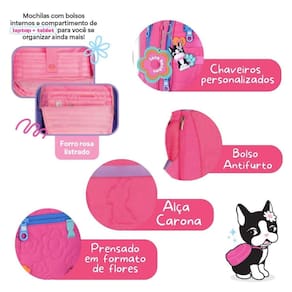 Uma combinação perfeita para o dia a dia: este kit une estilo, funcionalidade e muita praticidade, trazendo a mochila, lancheira e o estojo juntos para deixar tudo ainda mais organizado. A Mochila Rebecca Bonbon RB26231 é aquele modelo que combina estilo, textura e funcionalidade em um único produto. Confeccionada em material soft prensado com desenhos em formato de flores, traz um visual único e delicado. Os cadarços possuem enfeites e etiquetas em borracha, enquanto o bolso frontal recebe silk e bordado, garantindo ainda mais personalidade. Como charme extra, acompanha chaveiro de flor em borracha + mascote RB em 3D, supercolecionável. Internamente, oferece espaço ideal para o dia a dia: compartimento principal amplo com espaço para notebook e tablet, além de 4 compartimentos frontais, todos com fechamento por zíper para garantir organização total. Laterais com bolsos telados, alça carona, bolso antifurto e alças de costas confortáveis completam o conjunto. Dimensões aproximadas: 443314 cm A lancheira RB26236 com revestimento térmico que mantém os alimentos na temperatura ideal. Possui compartimento principal espaçoso e mais dois bolsos frontais, todos com fechamento por zíper, além de bolsinhos telados nas laterais. Seu grande diferencial são as alças versáteis: pode ser Utilizado como mochilinha nas costas, no ombro com a alça transversal ou pela alça superior de mão, garantindo praticidade e conforto no dia a dia. Dimensões aproximadas: 27x20x12cm. O Estojo Fichário RB26233 é perfeito para quem precisa de muito espaço e organização. Ele possui capacidade para acomodar até 96 lápis somente nos elásticos, mantendo tudo sempre visível e fácil de acessar. Confeccionado em material soft prensado com delicado formato de flores, conta com zíperes coloridos, cadarço com enfeites, etiqueta de borracha e acabamento supercaprichado. Suas dimensões aproximadas são 29x4x22cm Marca: Não Informado Ean: 7793966237698