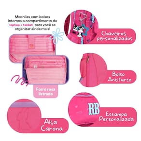 Este Kit é a combinação perfeita para quem busca estilo, funcionalidade e muita organização. A mochila RB26223 é aquele modelo premium que conquista pelo visual moderno e pelas funcionalidades inteligentes. Confeccionada em material soft com acabamento em jacquard, ela combina textura sofisticada com o charme do cadarço logado acetinado e dos zíperes coloridos. Seu grande diferencial é o bolso frontal removível que se transforma em uma lindíssima shoulder bag, perfeita para usar no dia a dia. Esse mesmo bolso possui visor transparente, ideal para usar o celular com praticidade e segurança. A mochila conta com compartimento principal super espaçoso, com divisões internas especiais para notebook e tablet, além de um compartimento frontal fechado por zíper e mais três bolsos estilosos na parte da frente, incluindo o removível. Possui bolsos telados laterais para garrafinha, bolso antifurto, alça carona e todo o conforto necessário para a rotina. Dimensões aproximadas: 44x33x14cm. Para completar, o estojo fichário RB26225 acompanha todo esse charme, trazendo material soft com silk exclusivo, zíperes coloridos e cadarço acetinado, além de capacidade impressionante para até 96 lápis organizados pelos elásticos internos. Dimensões: 29x4x22cm. A lancheira RB26228 é confeccionada em material resistente, com revestimento térmico que mantém os alimentos na temperatura ideal. Possui compartimento principal espaçoso e mais dois bolsos frontais, todos com fechamento por zíper, além de bolsinhos telados nas laterais. Seu grande diferencial são as alças versáteis: pode ser Utilizado como mochilinha nas costas, no ombro com a alça transversal ou pela alça superior de mão, garantindo praticidade e conforto no dia a dia. Dimensões aproximadas: 27x20x12cm. Com esse kit, o cliente leva um conjunto completo, combinando beleza, praticidade e tudo o que é necessário para uma rotina organizada.